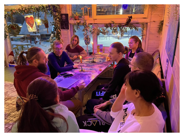 ПРОГРАММА ЕЩЕ ДОПОЛНЯЕТСЯ! ОСНОВНОЙ ЗАЛ 15.00 — Заезд 15.15 — Обед, чаепитие 16.00 — Круг знакомств «Минута Славы» 17.00 — Сессия вопрос-ответ от Джоника «Мой путь к успеху» — отвечу на все ваши вопросы: как я достиг масштаба за короткое время в любимом деле, отношениях, окружении, доходе 18.00 —Мастер-класс: «Веселые неваляшки» - Суставная гимнастика, растяжка и мягкая правка позвоночника. Тем у кого получится с первого раза подарки от компании «Сила Природы» 18.30 - Мастер-класс по латине 19.00 — Караоке и танцы 19.30 — Праздничный ужин — поздравляем Джоника — лидера сообщества Jonik-salsa, сальсероса, автора и ведущего танцевальных мастер-классов, организатора мероприятий и туров в Узбекистан 21.00−23.00 — NEW! — фееричное магическое ультрафиолетовое шоу от проекта Androgyne — погружение в музыку и голоса артистов, космическое пространство, смешение музыкальных стилей и танца, ультрафиолетовый грим! После шоу вы точно станете счастливее! Не пропустите! 23.00 — Дискотека, песни, гитара 23.30- пишем намерения на 2024 год и коллективно запускаем шар в небо в 00.00